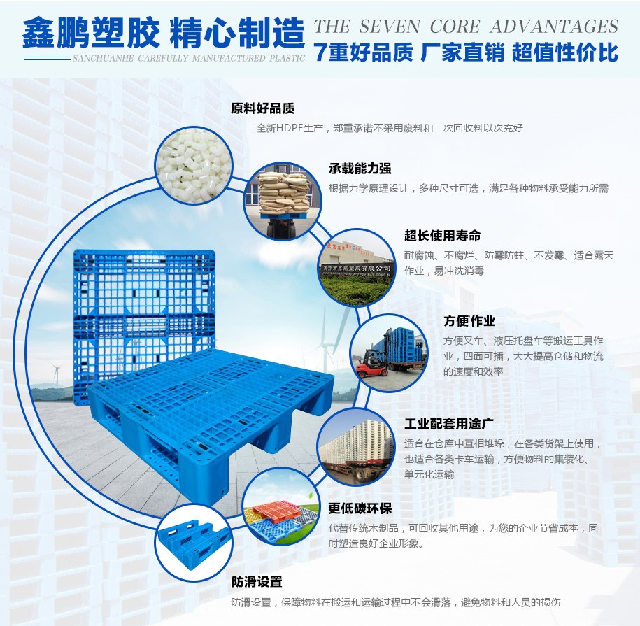 3、嚴(yán)禁將塑料托盤(pán)從高處拋落,避免因猛烈地撞擊而造成托盤(pán)破碎、裂紋。